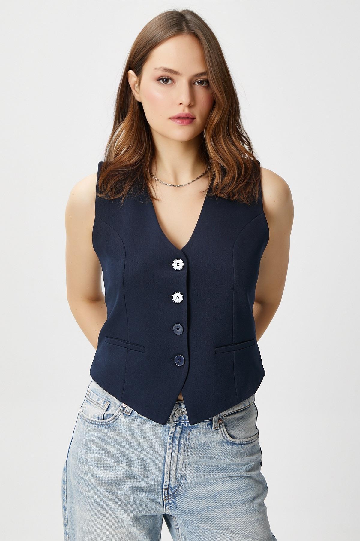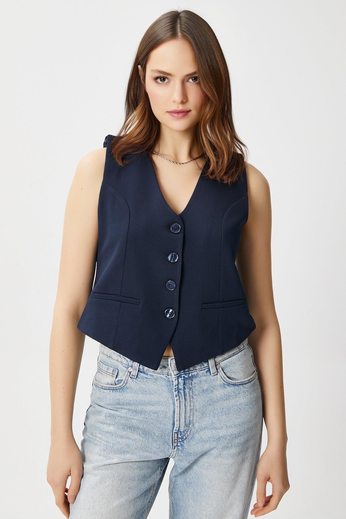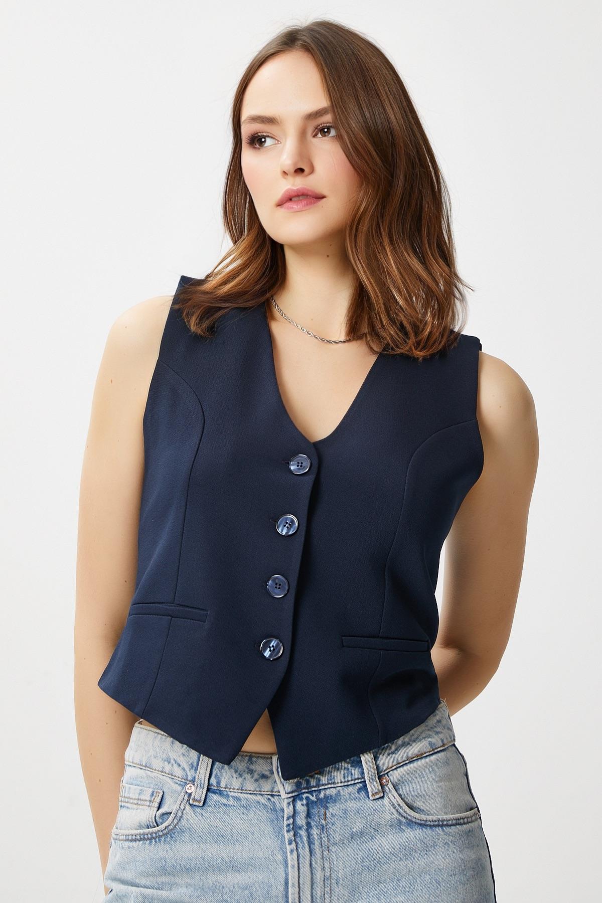 Ritnice Kadın Milena Astarlı Lacivert Yelek